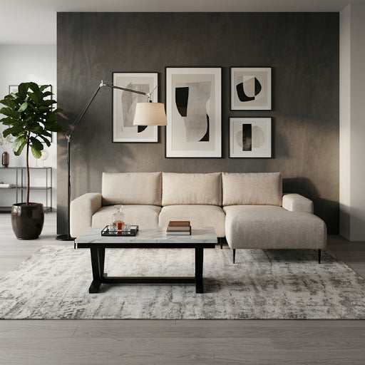 Sofá Seccional Derecho Moderno Beige Castelo + Mesa de Centro Mármol Blanca