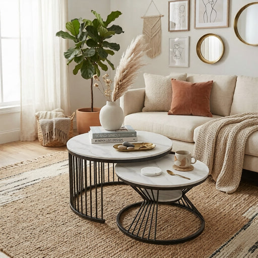 Mesa de Centro Moderna Redonda Mármol Set 2 Piezas Valencia
