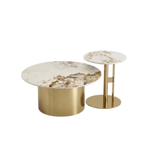 Mesa de Centro Moderna Redonda Mármol Gold Set 2 piezas Padova