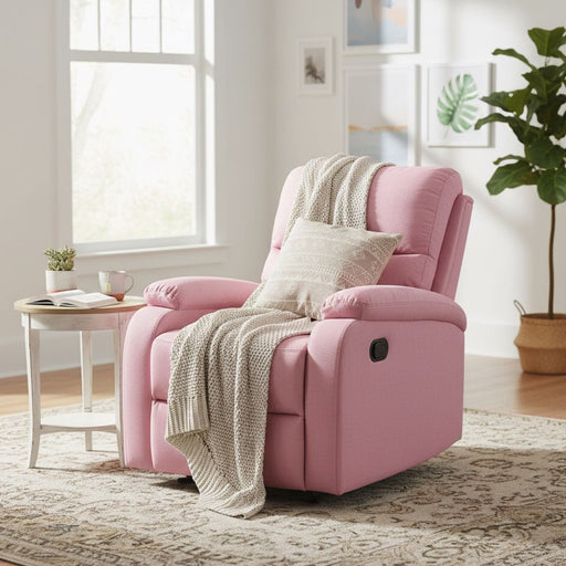 en stockAmbienta tu hogar con lo nuevo de Daniels Chile. Este confortable Berger Rosa Reclinable de lino, consta de un diseño moderno que te permite reclin...